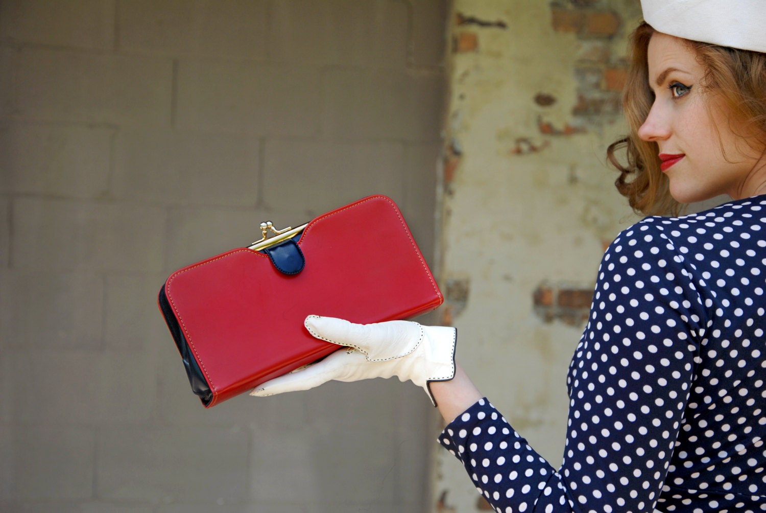 Not only can you convert neat vintage pieces on your feet, you can also convert things you hold with your hands. This vintage clutch purse from the 1960s has a red cover...
