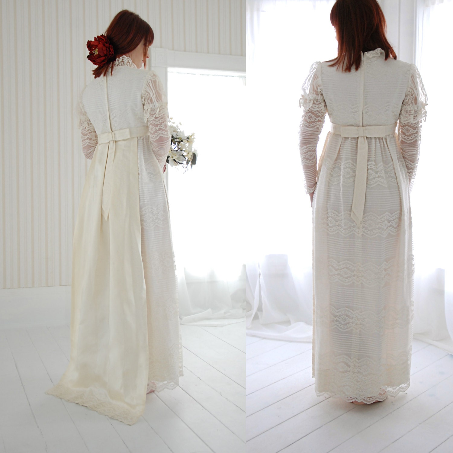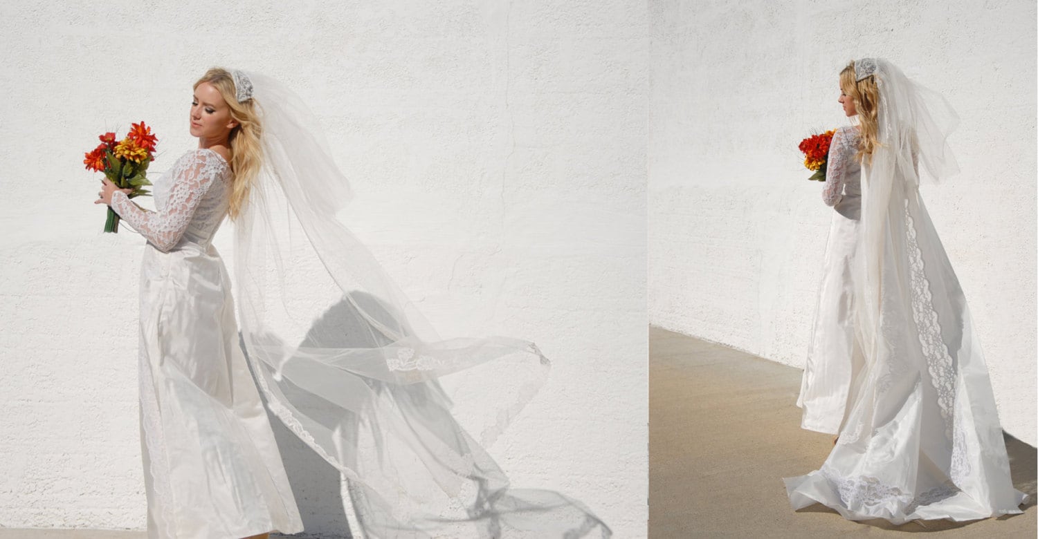 Or this longer train on another stunning 1960s wedding gown that attaches higher on the back.