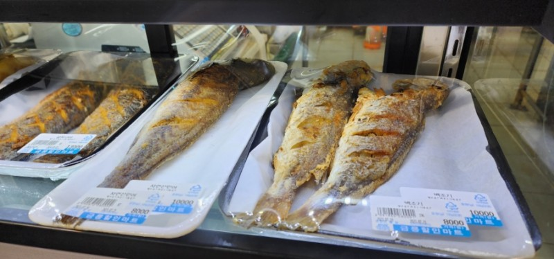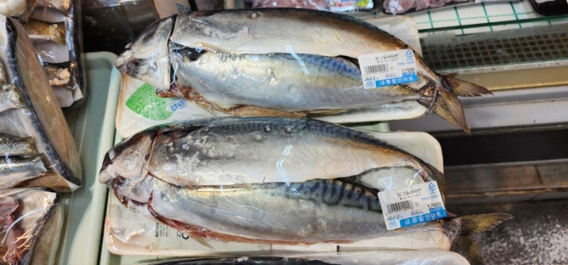 직접 고등어에 소금을 뿌려 자반을 만들어 파시는데 안짜고 맛있어서 자주 사서 에프에 구워먹습니다.