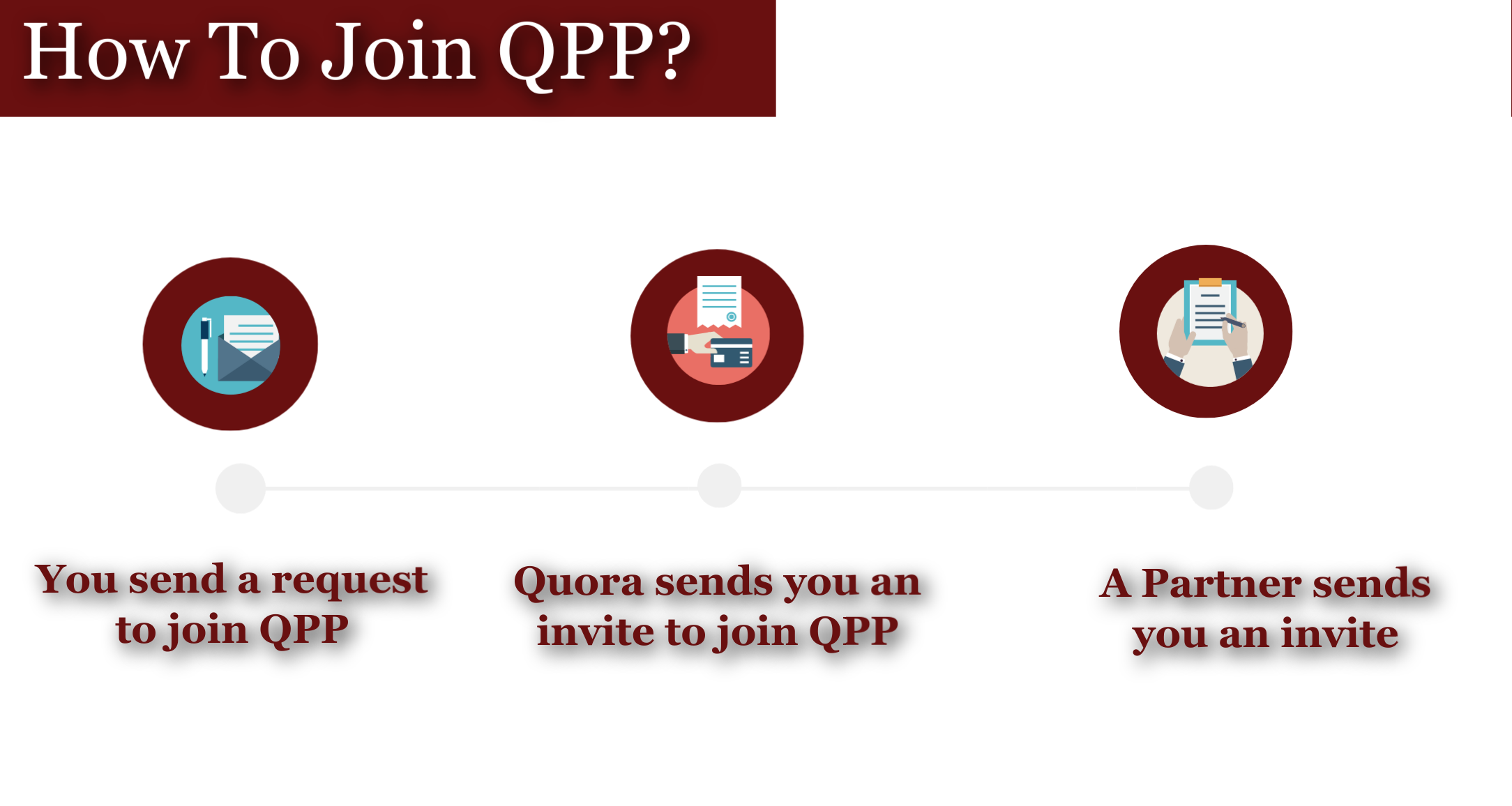 The third way is through an invitation from partners. Those who are already in the program can invite eligible people who are already having a Quora account can invite them to join the program.