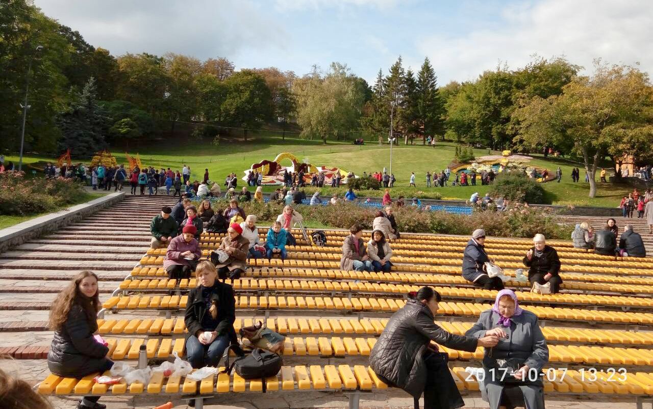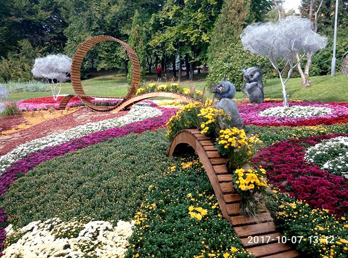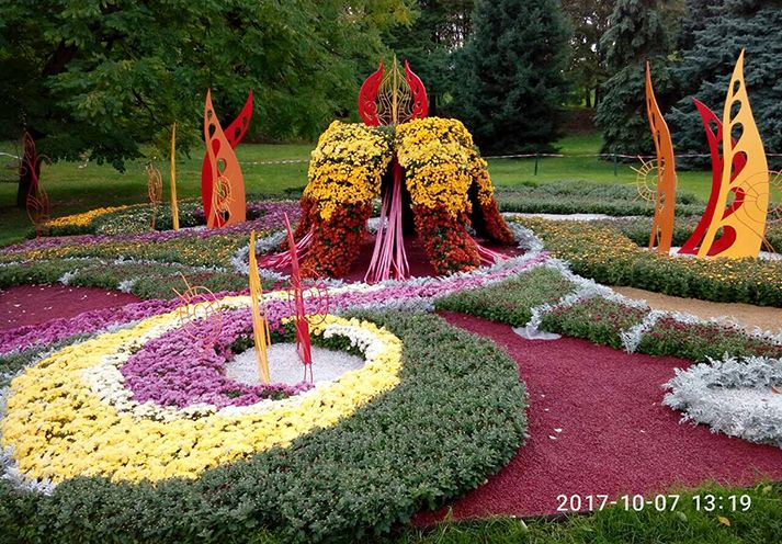Узнав, что с 4.10.17 по 25.10.17 на Певческом поле г. Киева будет проходить фестиваль хризантем " Фантастическая история", в цветочных композициях которого было использовано более 25 000 разных сортов хризантем разных цветов и размеров! В первый же выходной день мы поехали туда и не пожалели.