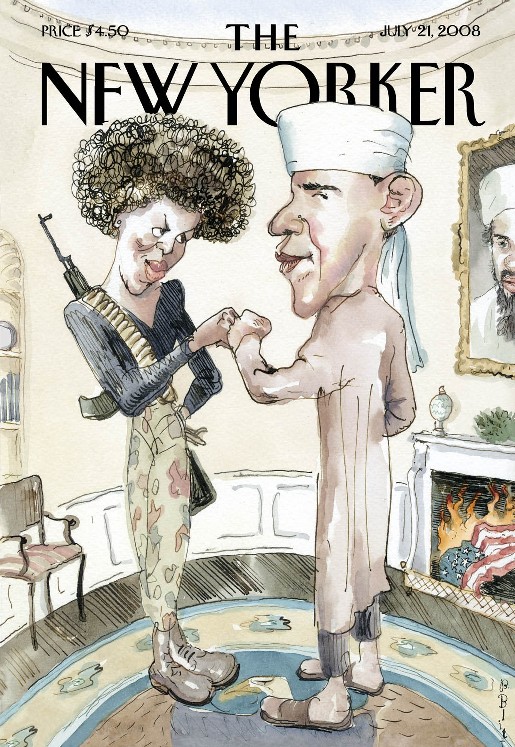 There was a huge backlash to this cover, flooded with criticisms. Even John Steward talked about this on his show. The cartoonist Barry Blitt's response to the city wide reaction sounded very innocuous: It's just a cartoon and it makes me laugh.