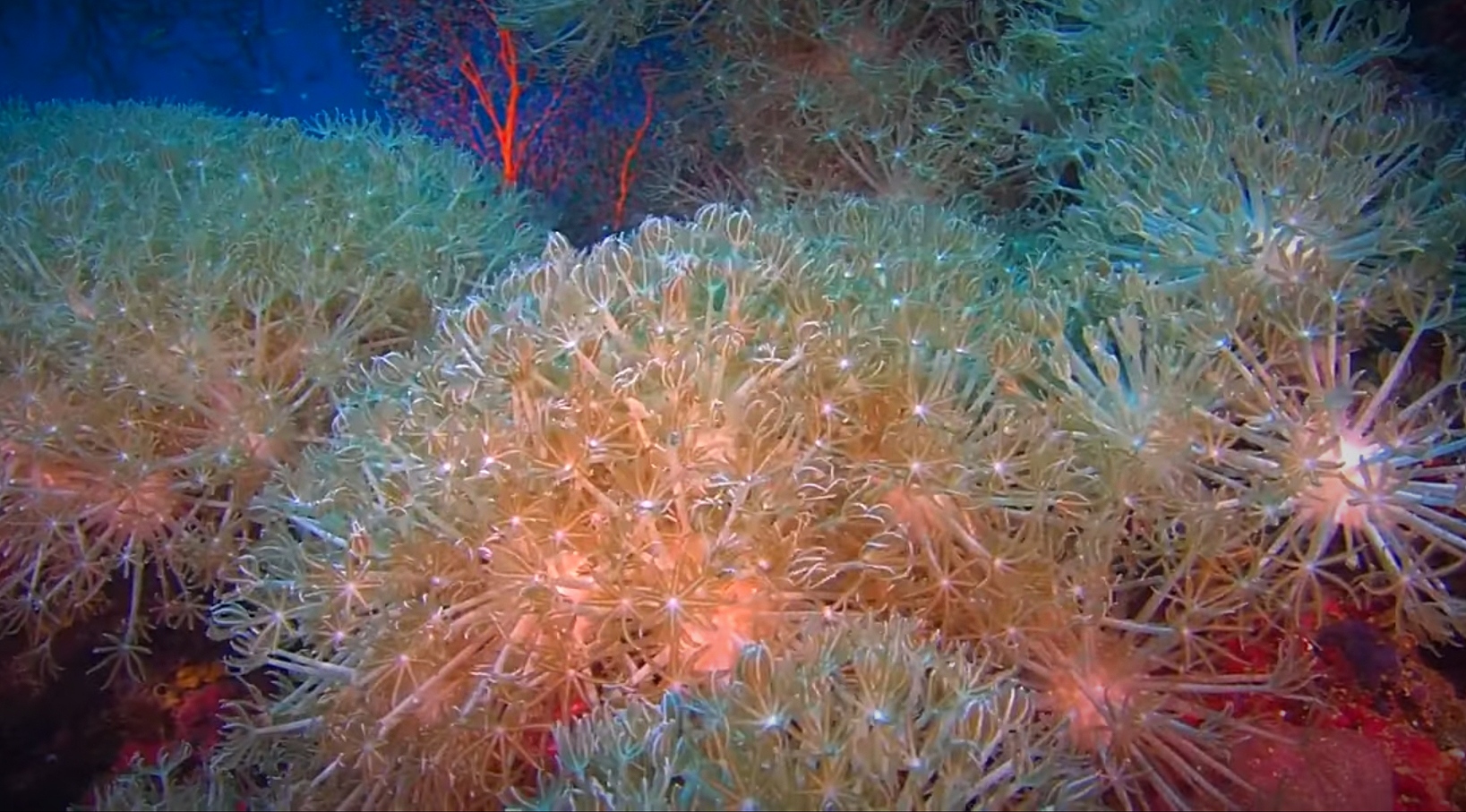 Polip secara terus menerus mengeluarkan kalsium karbonat untuk membangun kerangka pelindung ini,