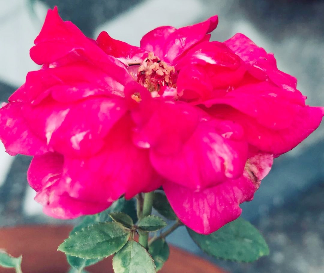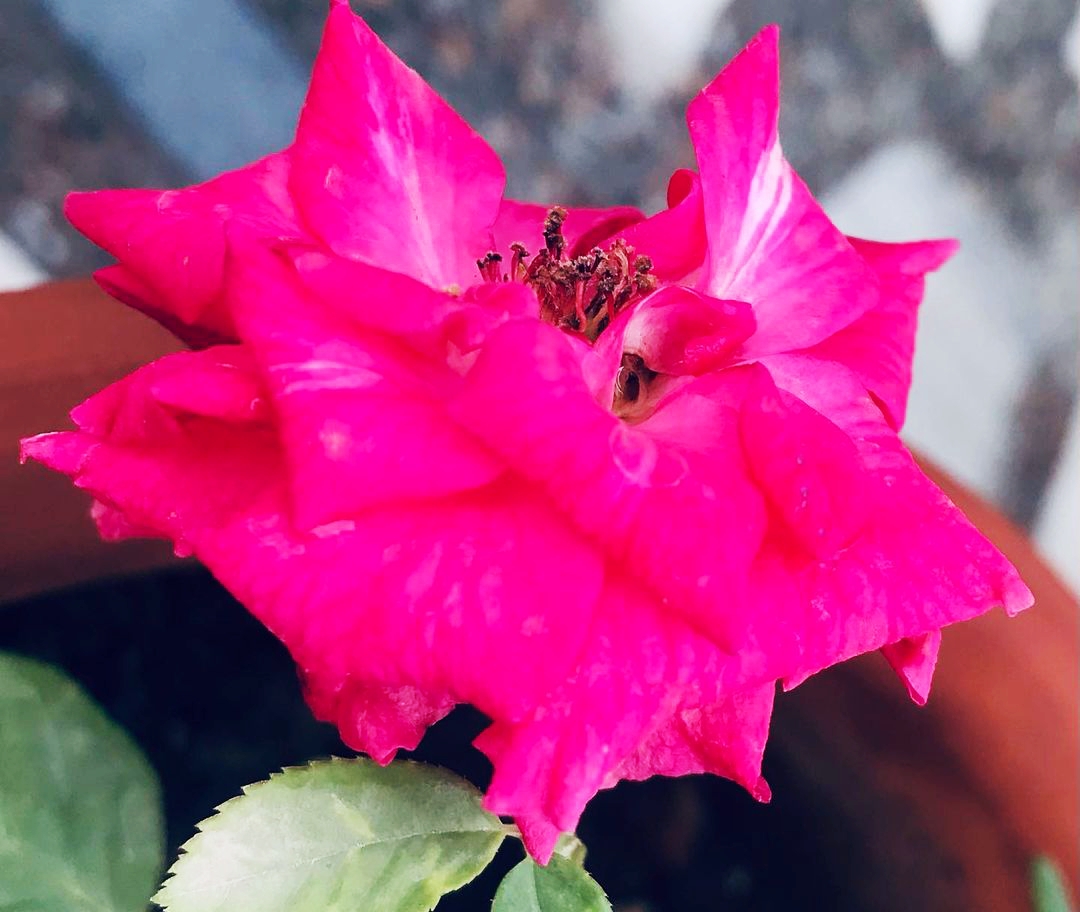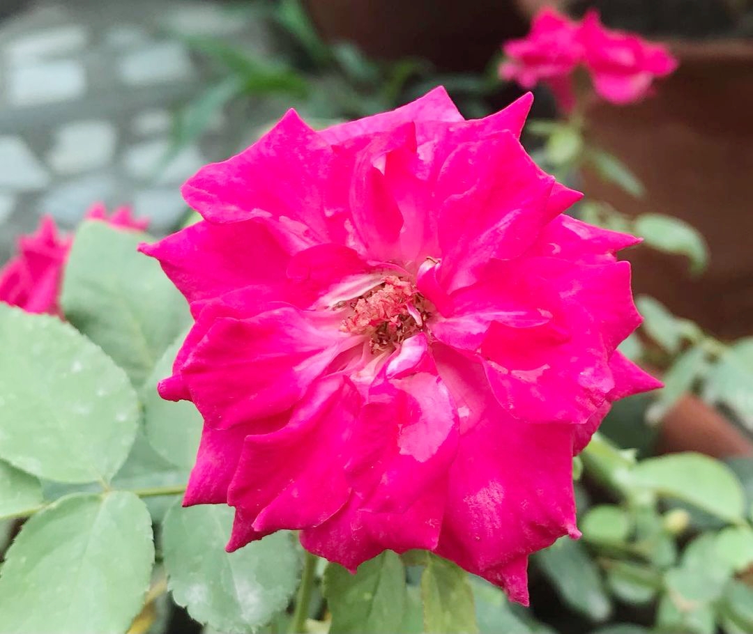 Rose is a kind of herbaceous plant from the genus Rosa as well as the name of the flower produced by this plant. Wild roses consist of more than a hundred species, most of which grow in the cool northern hemisphere. here I found a rose in a flower pot in the hallway of my friend's house that I visited which was so beautiful when I saw it