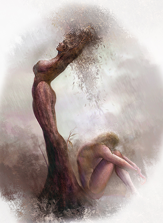 The product of this appeal, which thinks that the Daphne is overturned, is covered with a gray crust of the body and the fragrant hair turns into leaves. Their arms extend in branches, their legs roam towards the depths of the land. A Daphne tree appeared.