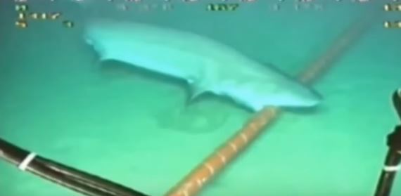 See the Shark in the photo. Mixed up the cable with another electric field of another fish and can not eat it.