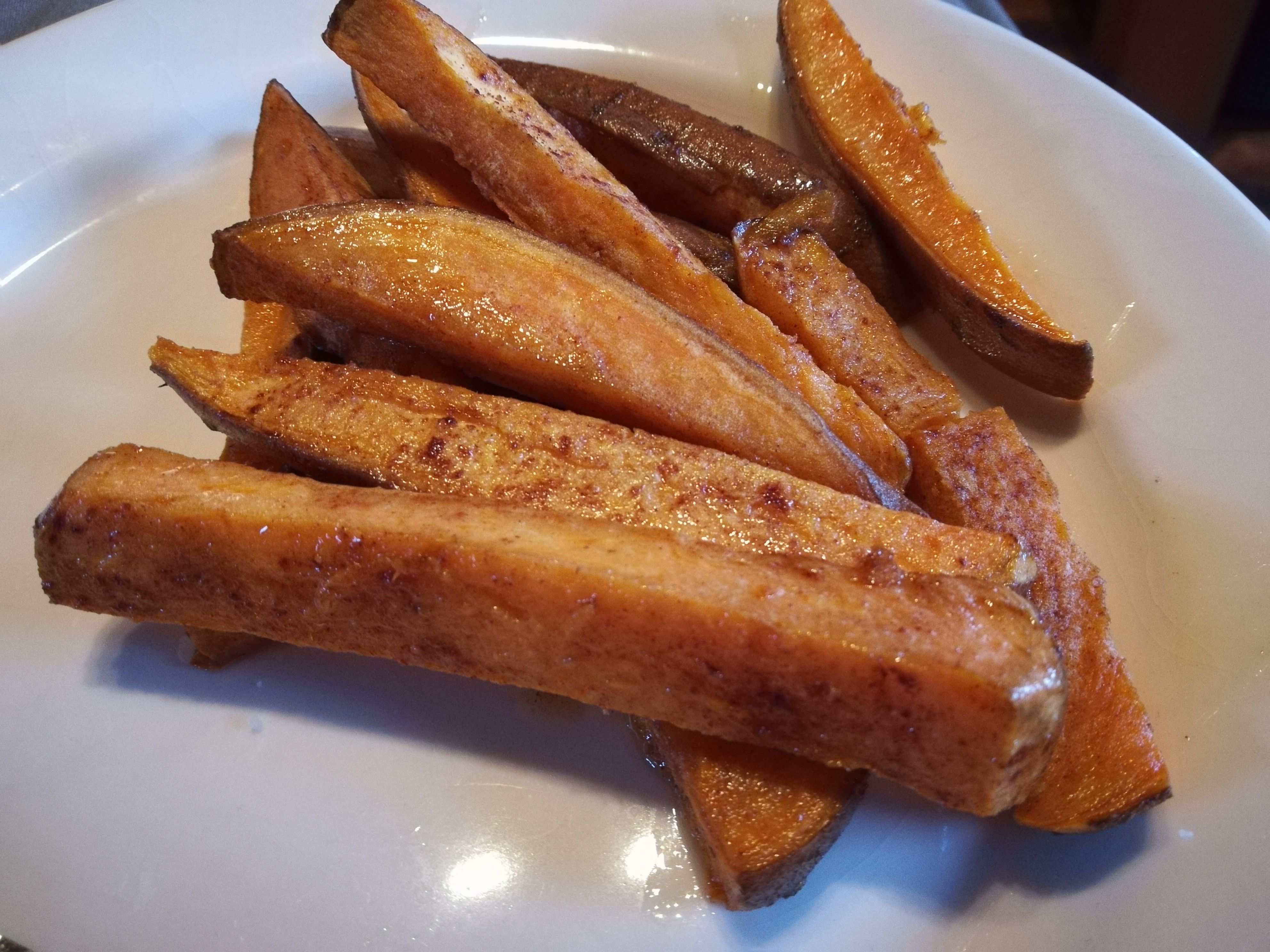 For dinner, I made sweet potato fries with cinnamon! That was also pretty tasty.