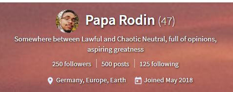 Papa Rodins Second Week on Steemit