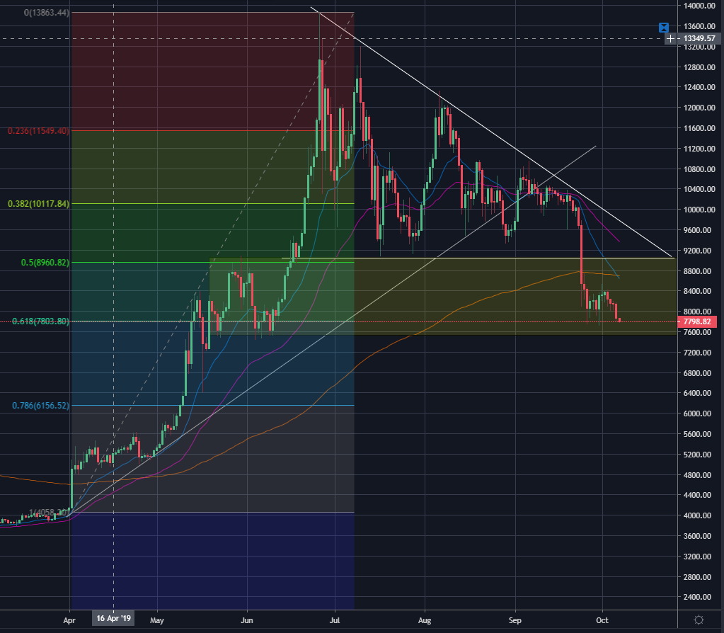 3.Bitcoin has now retrace to the 0.618 target on the Fib Retracement, it went down and hit the exact 0.618 at $7800 mark, yes its true that Bitcoin can keep going down to the 0.786 and hit another psychological target at $6000 but currently since last year everytime Bitcoin has a Death Cross a bounce comes right after.
