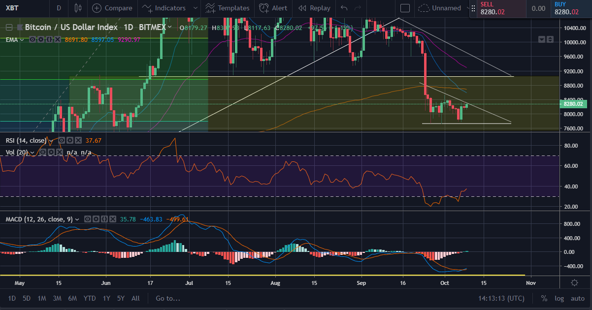 This week I have paste many times the Bitcoin Daily chart and time again and again this looks very juicy, in my opinion a move to the upside is very likely to happen, indicators like the RSI and MACD are properly align with the 20EMA the blue line at the top, as mention before a death cross only means an extreme move downside if both the 20 and 50 EMA continue going down but we can see that the 50 EMA is not moving in the same direction as the 20 this makes this case bit bullish in the short term, at the moment of this post Bitcoin is again trying to break the $8500 mark and once that happens the rest will be history Bitcoin will touch the $9k and very possible after that then a move to the downside as expected by many probably hitting the $6k mark, lots of opportunities in our hands.