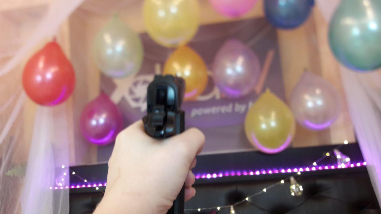 Is it a BB gun (airsoft) or do you use life-rounds to pop these balloons? :D