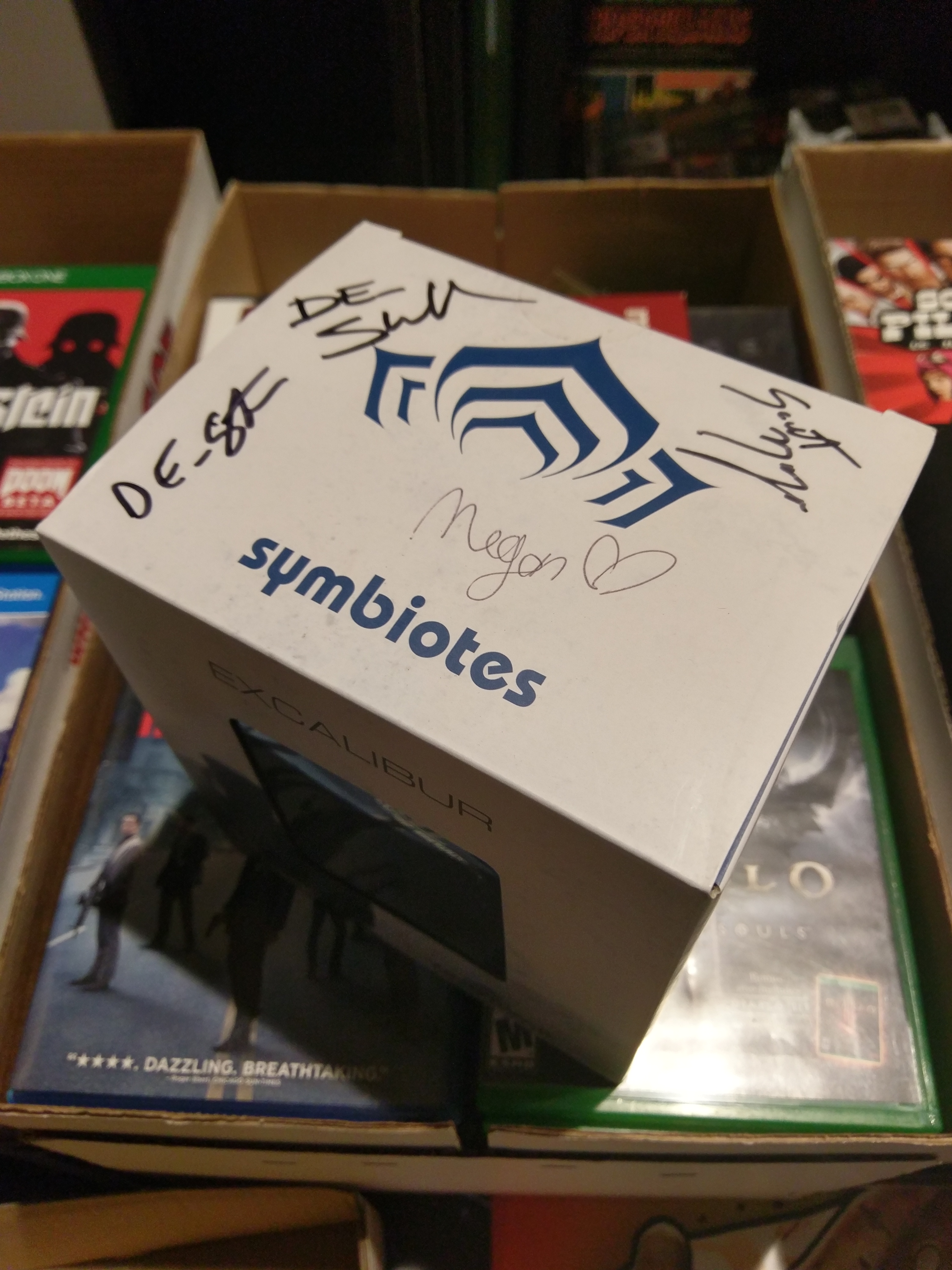 While going through my shelves I'd have to say that one of my prized possessions was from a Warframe afterparty in New York a few years back. I managed to get some of the DE devs to sign the figures they were handing out, have a few drinks, and got to talk to the Devs before having to head out, great times.