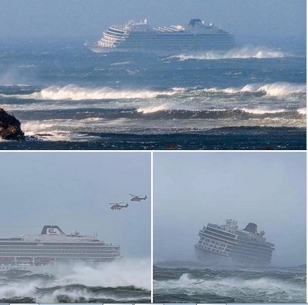 El “Viking Sky” hizo un llamamiento de socorro el sábado por la tarde cuando se averió un motor. En medio de una tormenta, el crucero avanzaba sin rumbo hacia las aguas costeras donde hay arrecifes, en la región de Møre og Romsdal, al oeste de Noruega.