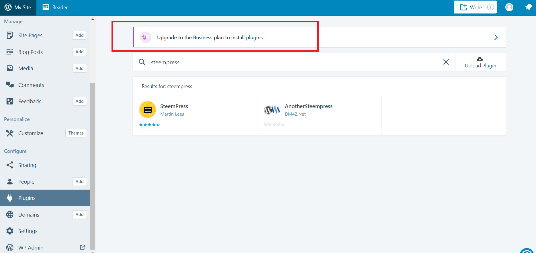 it needs business plan in order to install plugin, great now wonder how much it the plan