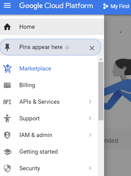 - Login and signup https://console.cloud.google.com > click "Marketplace"