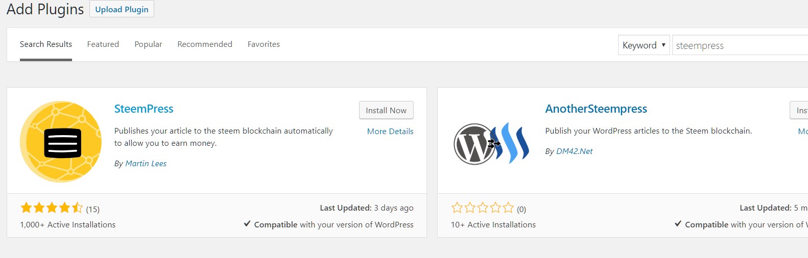 Now login to lets login to https://wordpress.com/plugins and install steempress