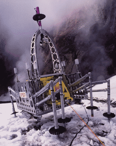 In 1994, a climbing robot by the name of Dante II was sent for the first time to explore the interior of a volcanic crater in Alaska. After entry into the crater, the measuring devices and cameras, hidden in the legs of the robot, started exploring the dangerous terrain. By analyzing the data and the images received from the surroundings, an onboard computer calculated each step of the robot. It was able to overcome boulders as high as 1 m and descended 70 m deep in the volcano before crashing. Fortunately, it had sent all the data collected and the images to the research station via satellite before it crashed.