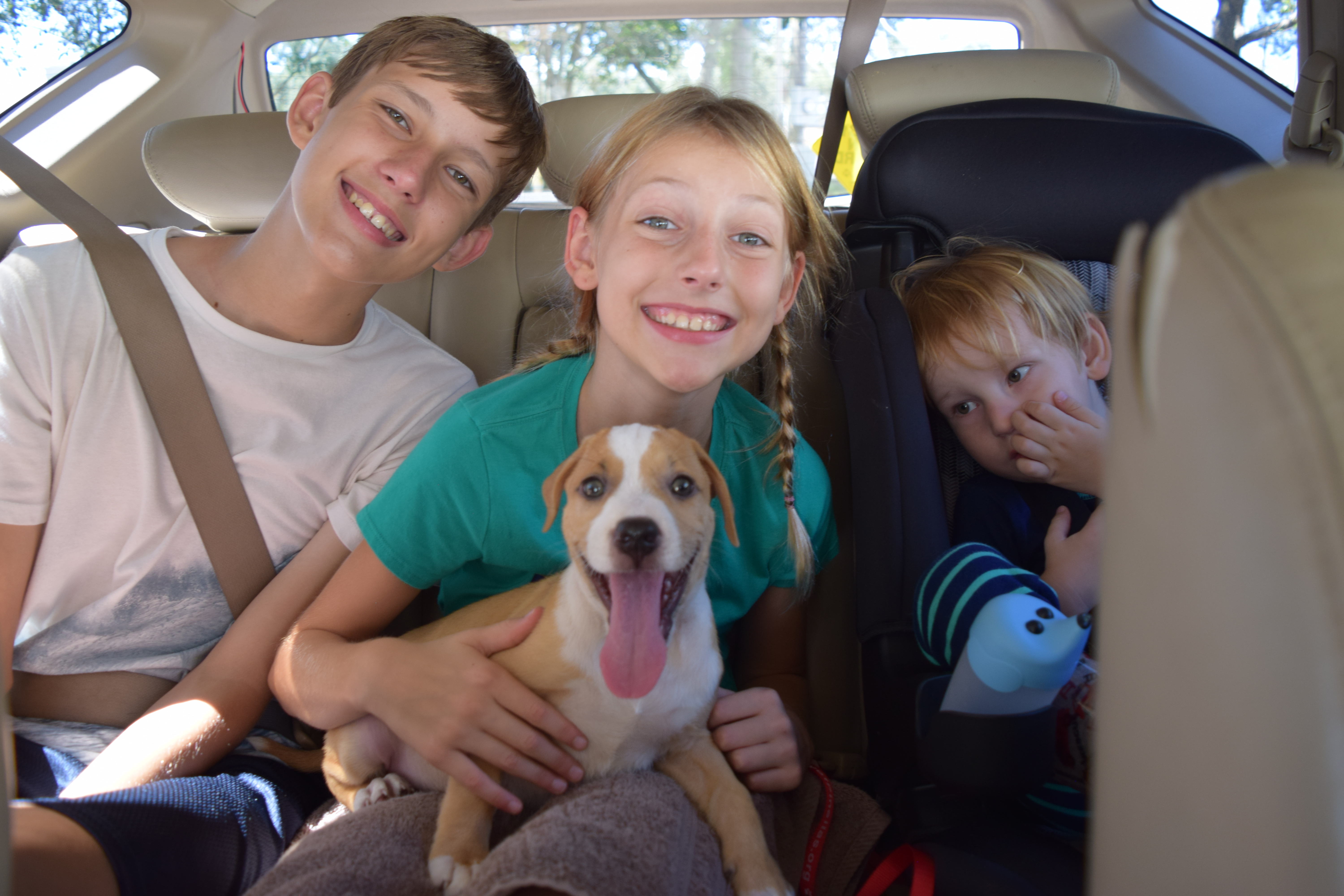 So as you know I have a puppy, he is two months old. He is a Catahula Leopard Pit Bull Terrier mix. So, we got him from the shelter, because, you probably guessed pet stores don't have that breed. They found him on the streets as well as his four brothers and one sister. They had worms and were sick so then they were up for sale. Most of the puppies had blue eyes, ( a bit creepy if you ask me) but, our puppy has brown eyes. He was named Dr. Who before we got him, so we played with him about three Fridays ago, when he just got nurtured, we played with him. And on September first, we came to see if they still had him. So they said they didn't have him anymore. I was heart broken, so we played with another puppy, but he WAS the same pup! That guy who adopted "Dr. Who" didn't even adopt his dream dog! Of course i feel bad for the guy, but still! We brought him home and named him Cooper for no reason, and since then, we are living the BEST life we could ever dream of.