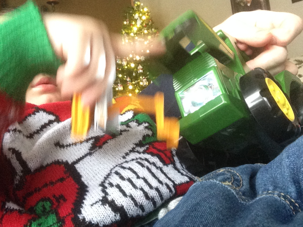 You might notice the young man is holding a Matchbox excavator (he calls a digger) in his other hand in the photo.