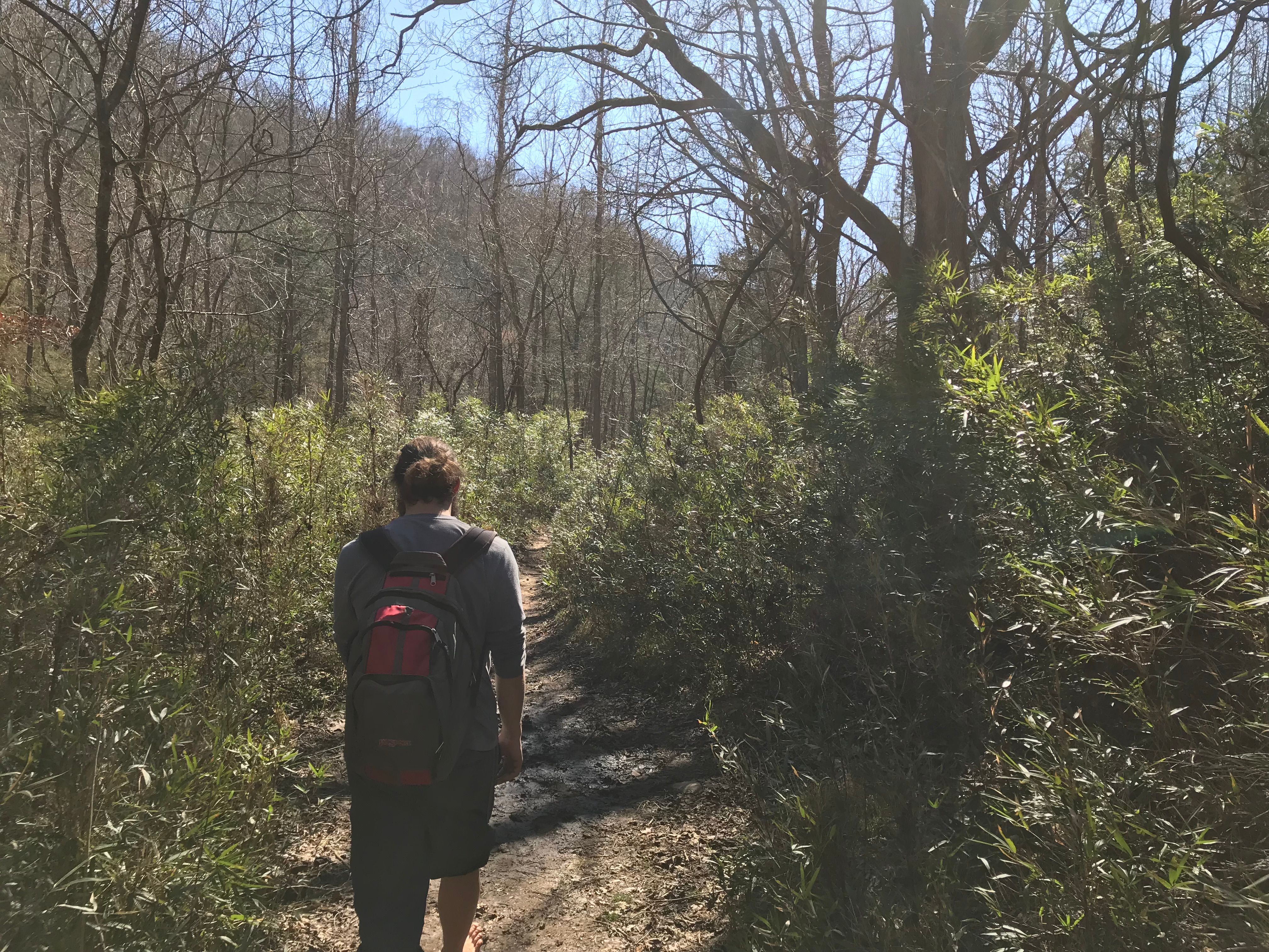 Definitely some of the coldest water I had ever jumped into! Luckily the sun was out to help dry and warm us back up. We explored a little more past the falls. You climb up a STEEP slope with a rope next to the falls that leads to a trail heading up the branch. My guess is this trails starts to stay maintained from here back up to the top of this branch. We decided it was time to turn around though. If you had two cars you could make this a nice day hike loop.