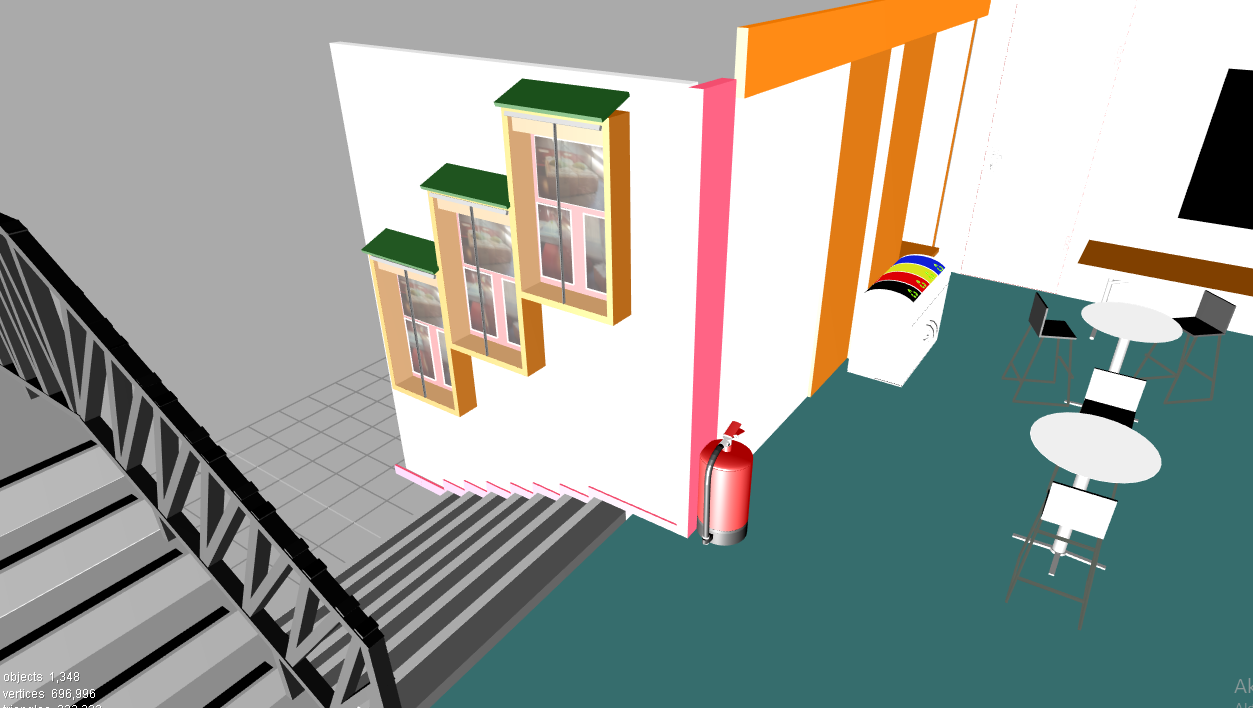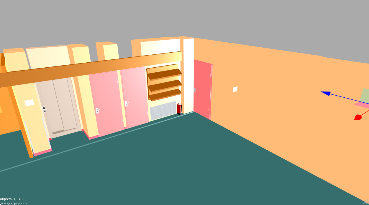 Before 2 days, i'm started to make some walls, and i ask Gábor to make me a fire extinguisher, and Dávid to make a recycle bin. Until I'm start to work out the edges, and the corners. At the end of the day, i made an elevator, and a door.