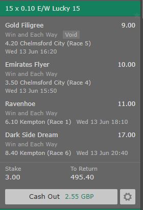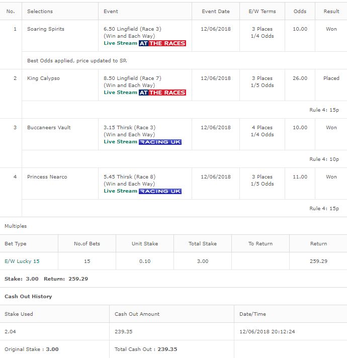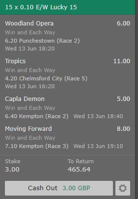Woodland and Capla placed 2nd very close to another big win but looks like profit none the less