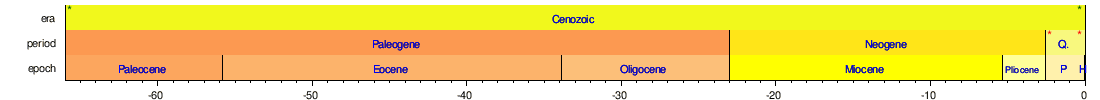 The following four timelines show the geologic time scale. The first shows the entire time from the formation of the Earth to the present, but this gives little space for the most recent eon. Therefore, the second timeline shows an expanded view of the most recent eon. In a similar way, the most recent era is expanded in the third timeline, and the most recent period is expanded in the fourth timeline.
