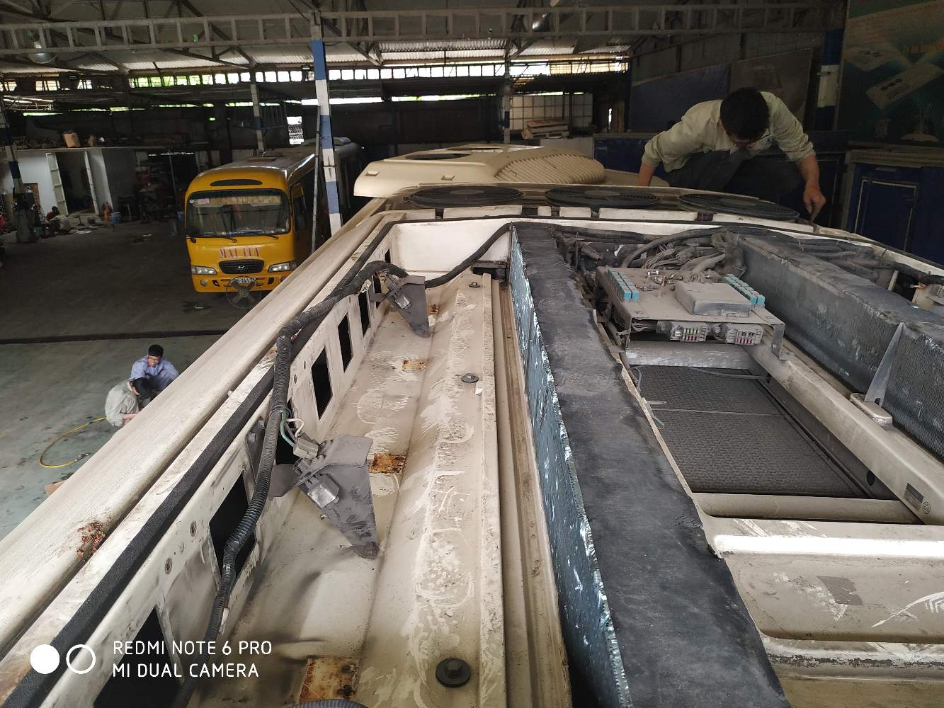 Đối với xe bus thì chèo lên nóc xe bảo dưỡng hệ thống giàn nóng và lạnh là điều quan trọng . Các xí nghiệp xe khách luôn thích sửa ở đây hehe nên chúng tôi thực tập được nhiều .hehe