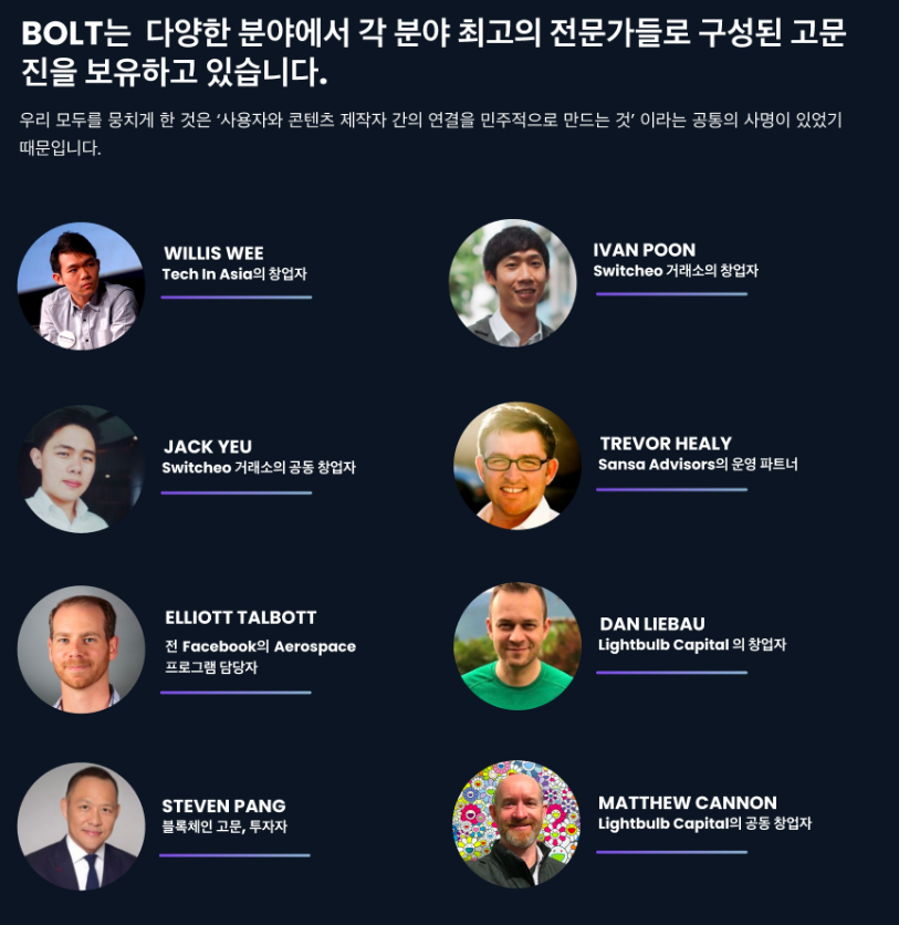 볼트는 여러 블록체인 서비스들이 추구하는 것처럼 유통과정에서 수많은 중간업자 과정을 줄여 최종사용자에게 과도한 수수료의 부담을 줄여주고