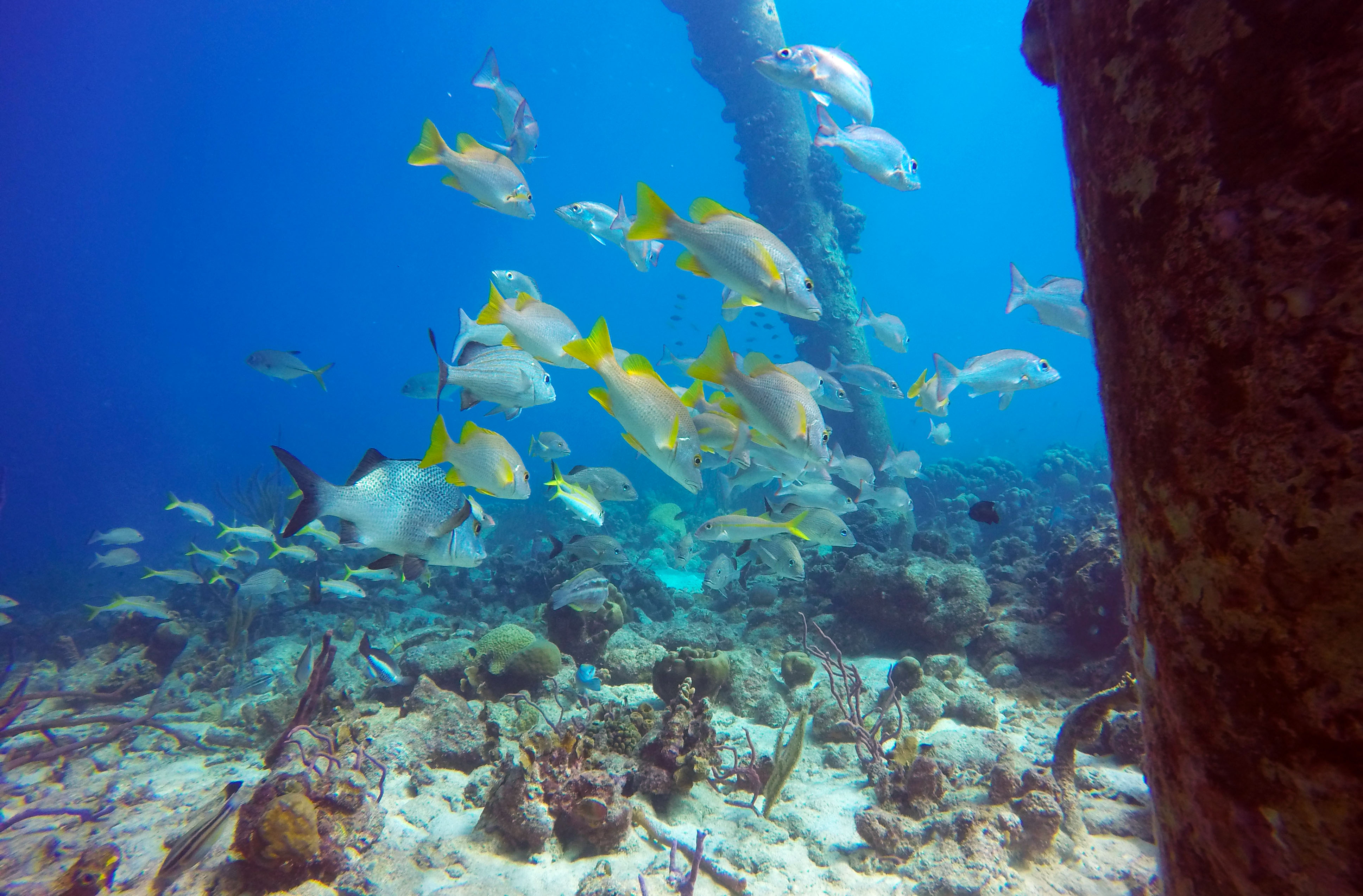 Salt pier - a system of about 5 different underwater pier supports spread over a large area, which support a pier system to transport salt.(Salt is one of Bonaire's main exports). This site has a wide variety of fish and range of different depths.