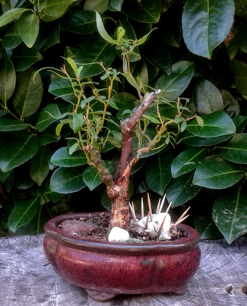 There is not much I can do as a grower to prevent the tree from allowing any particular branch to die back, which can be frustrating for a bonsai artist. However, by pruning back the tree during the growth season, I can force new branches to appear where I want them to be, and even style the branches to grow into exotic new gravity-defying directions.