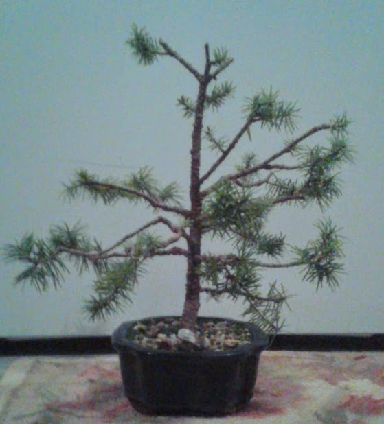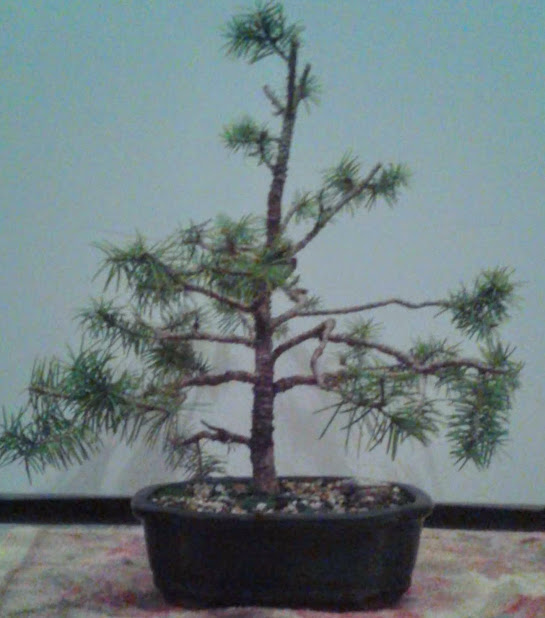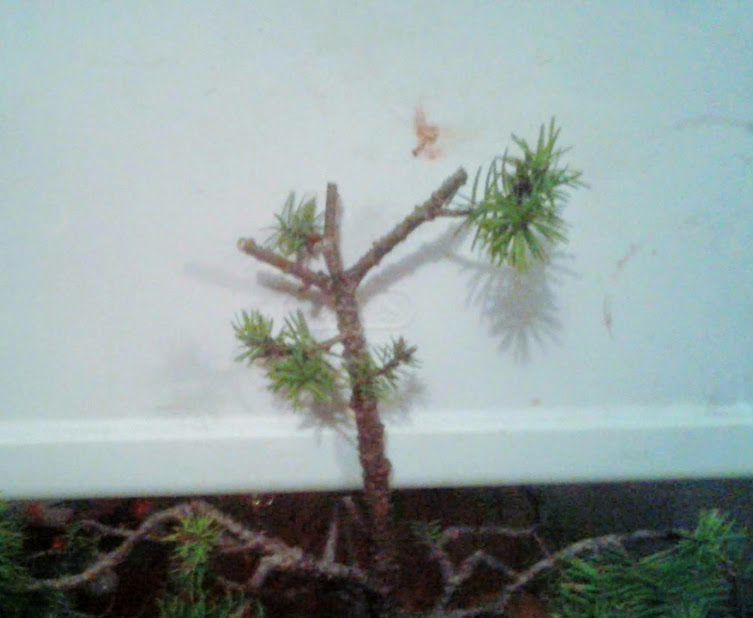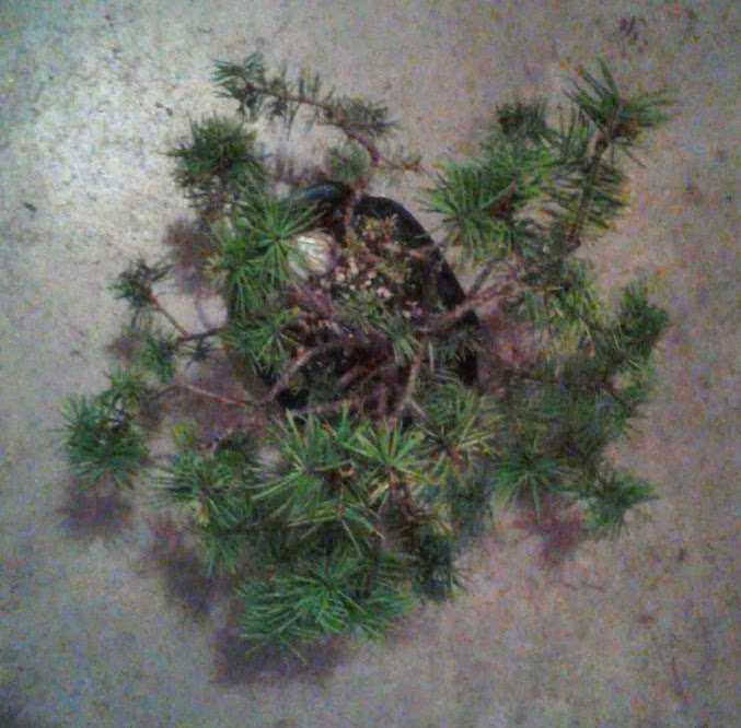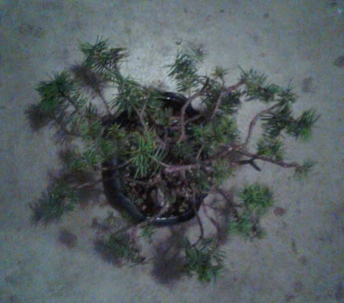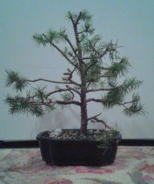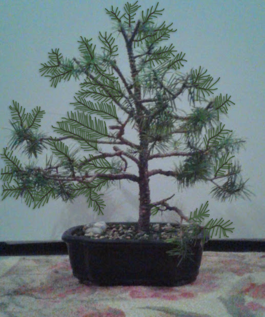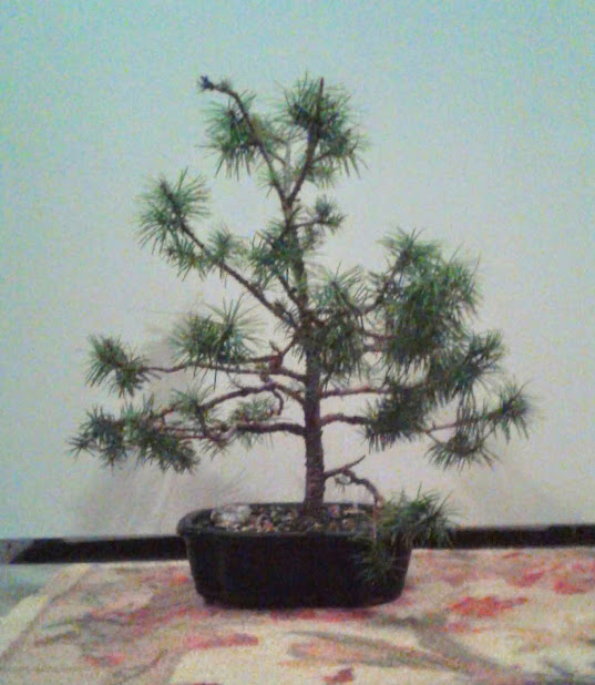 Notice the small needle size. This happens in bonsai trees when many new buds are forced to balance out a limited amount of energy.
