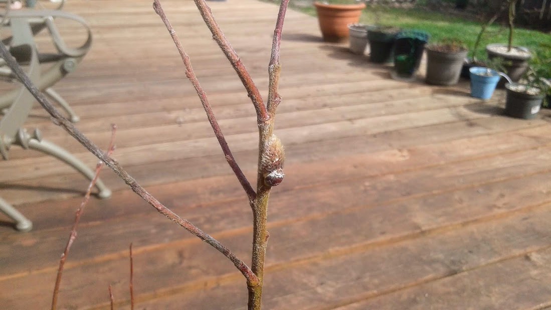 Meanwhile my trees were only forming one or two medium sized buds. If I ever want to develop fuller sized buds, I would need to erase my bonsai techniques, and grow the pussywillow in a very different manner.