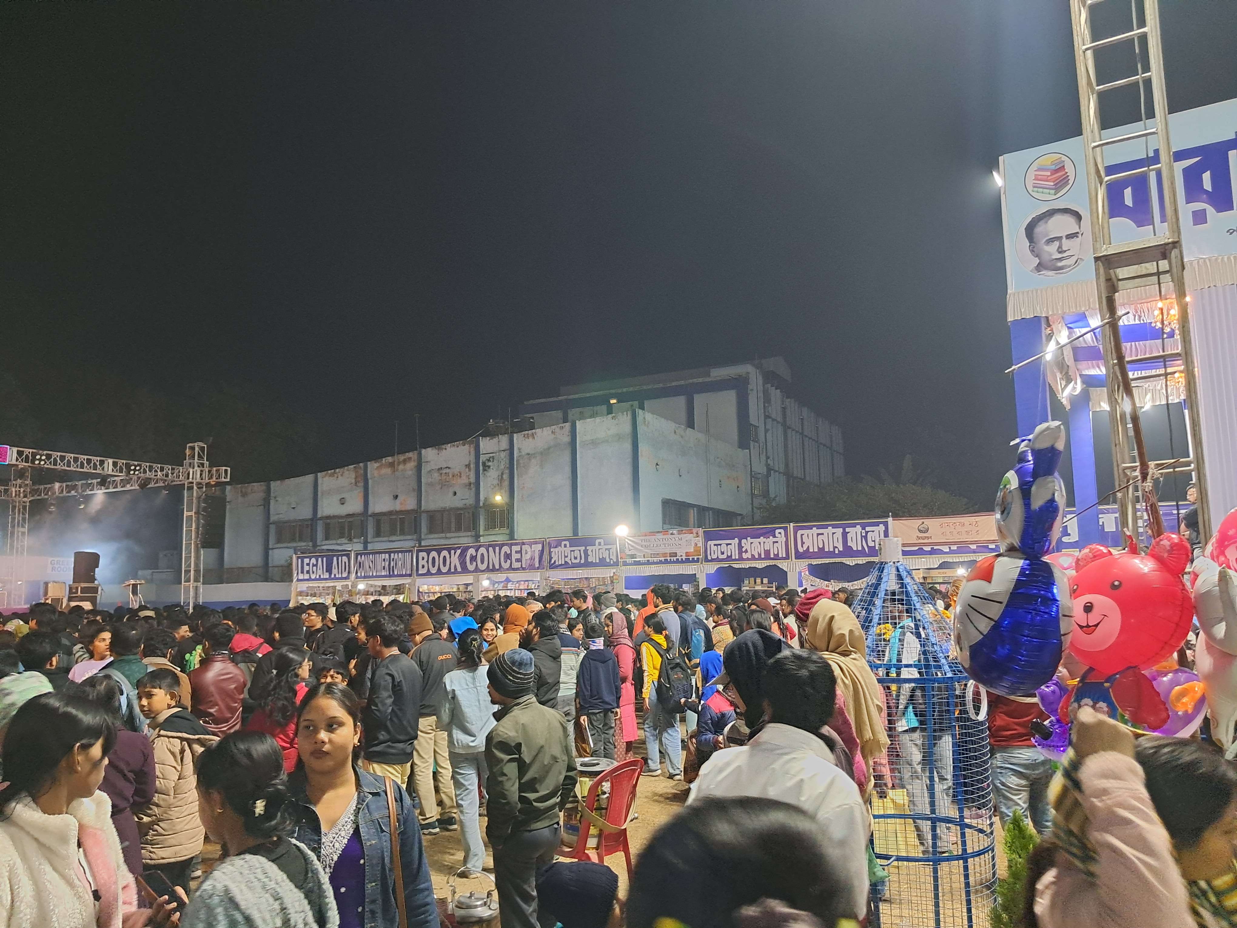 বইমেলা মানেই কিন্তু শুধু বই কেনাবেচার মধ্যে সীমাবদ্ধ নয়, এটা আসলে এক ধরনের উৎসব এর মতো। যেখানে একসঙ্গে অনেক মানুষ আর আবেগ একসাথে মিশে যায়। আজ সেই অনুভূতিটাই নতুন করে টের পেলাম বারাসাত বইমেলায় গিয়ে। সন্ধ্যা নামতেই মেলার প্রাঙ্গণ আলোয় ঝলমল করতে শুরু করে দেয়। এছাড়া দূর থেকেই ভেসে আসছিল মানুষের কোলাহল, মাইকের ঘোষণা আর মঞ্চ থেকে ভেসে আসা গান ও নৃত্যের সুর। প্রবেশ করতেই বোঝা গেল বারাসাতের বইমেলা যেন আজ এক মিলনমেলায় পরিণত হয়েছে। এছাড়া বিভিন্ন শিল্পীদের কন্ঠে গান শোনার মধ্যে একটা অন্যরকম অনুভূতি লুকিয়ে থাকে। মেলার ভেতরে ঢুকেই চোখে পড়ল সারি সারি বইয়ের স্টল। বড় প্রকাশনা সংস্থা থেকে শুরু করে ছোট ছোট বিভিন্ন প্রকাশক।