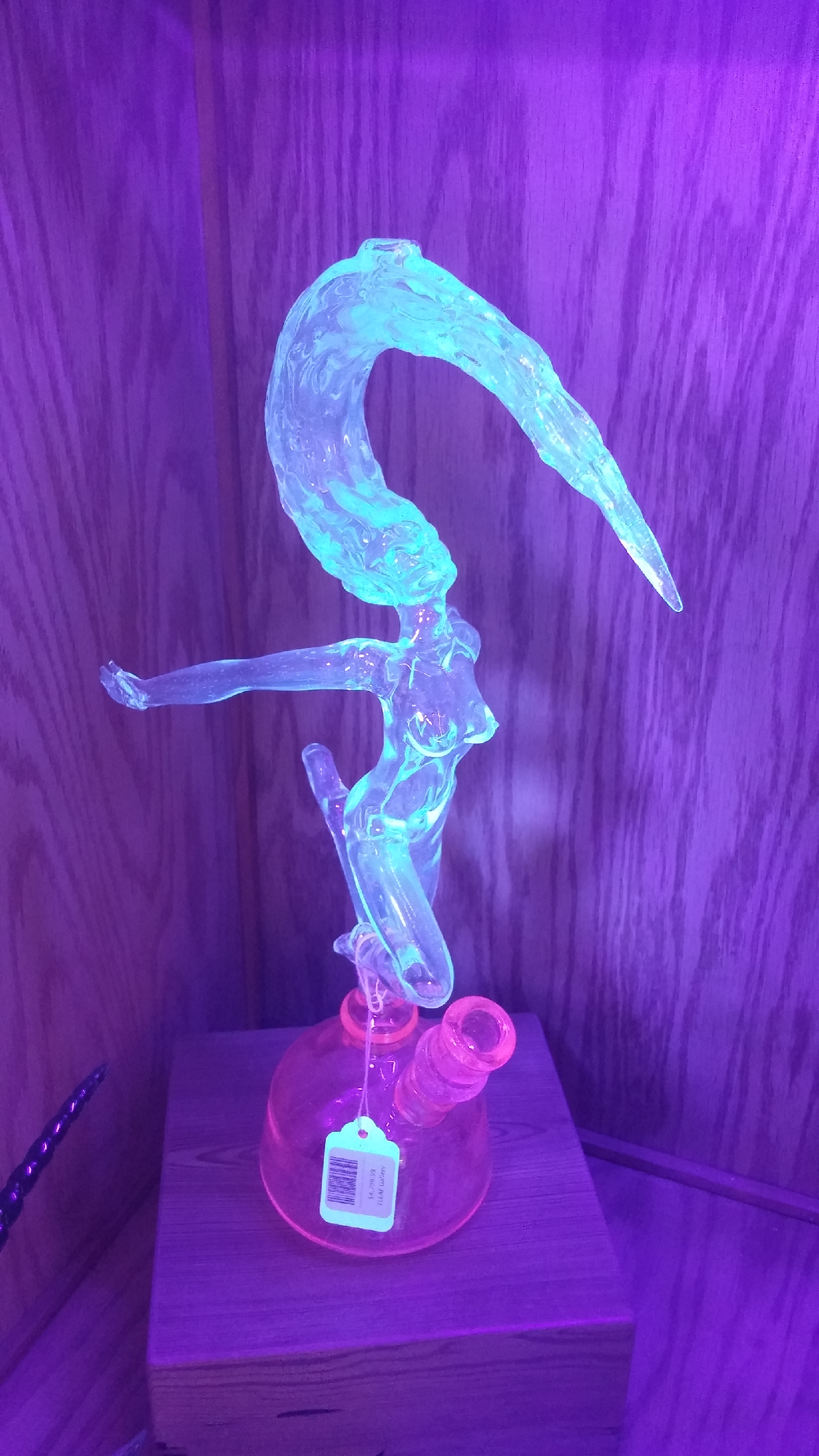 This first piece is absolutely stunning. It is currently residing in a glass gallery in Tallahassee Florida. Tobacco Leaf is an absolute must see gallery for any aficionado of high end functional art. Water is filled to allow for a bubbling effect that emanates throughout the whole piece creating a shimmering effect to her whole body.