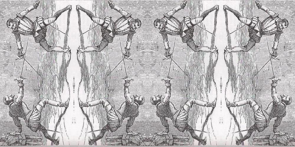 with sword, and shield, and anger wry