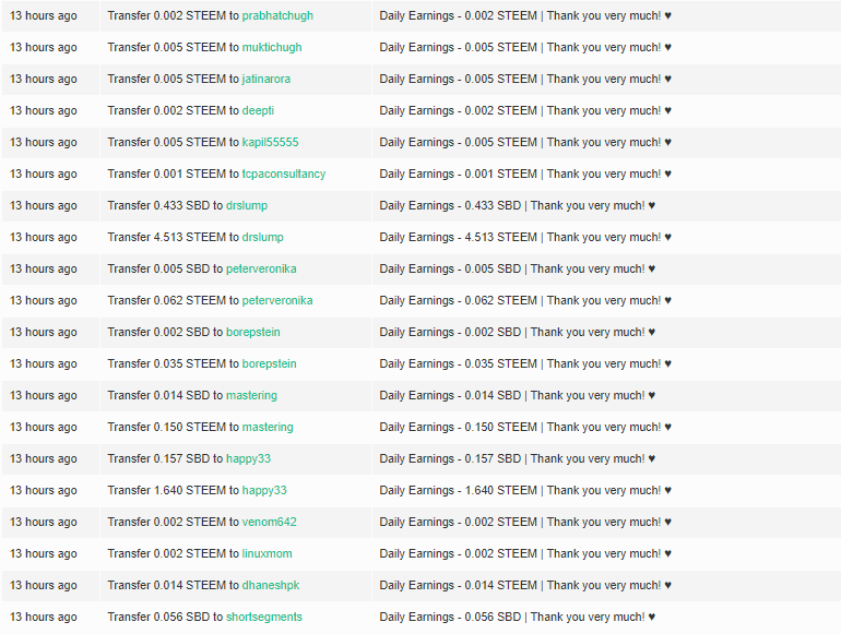 I would like to thank all of our 60+ delegators who has delegated their stake (SP) to @oceanwhale. You are supporting us and making us live. Let us support you and make you flourish and grow by our daily payouts. Our payouts are the top in the market. We give 100% of our daily rewards to our delegators.
