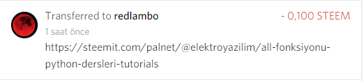 Transfer 0.100 STEEM to elektroyazilim return from @redlambo, sorry i was fixing the bot and missed the upvote