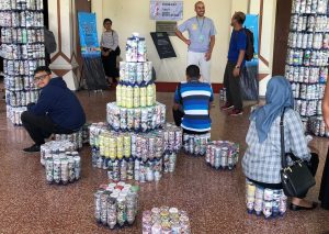 Shortly afterwards, we were invited to present ecobricks at the 2019 Urban Social Forum in Solo, Indonesia. All they wanted from us was a talk. I realized however, that this was the perfect opportunity to try out the ecobrick Open Space concept. With the help of our GEA Ecobrick Trainer network, we were able to mobilize about 150 modules (over 500 ecobricks!) for the forum. The folks at the forum were enormously supportive as they realize the awesomeness of the idea (their motto afterall is 'another city is possible'). They helped us transport the modules from Jogja, to print our info banners, and cover our hotel while there.
