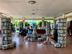 The banners around the space served to invite participants to make the space their own and to inform about ecobricks, about GoBrik, about modules, and about the Open Space philosophy. Participants were able to arrange the modules as needed-- either to sit with friends, or to play and make new ones.