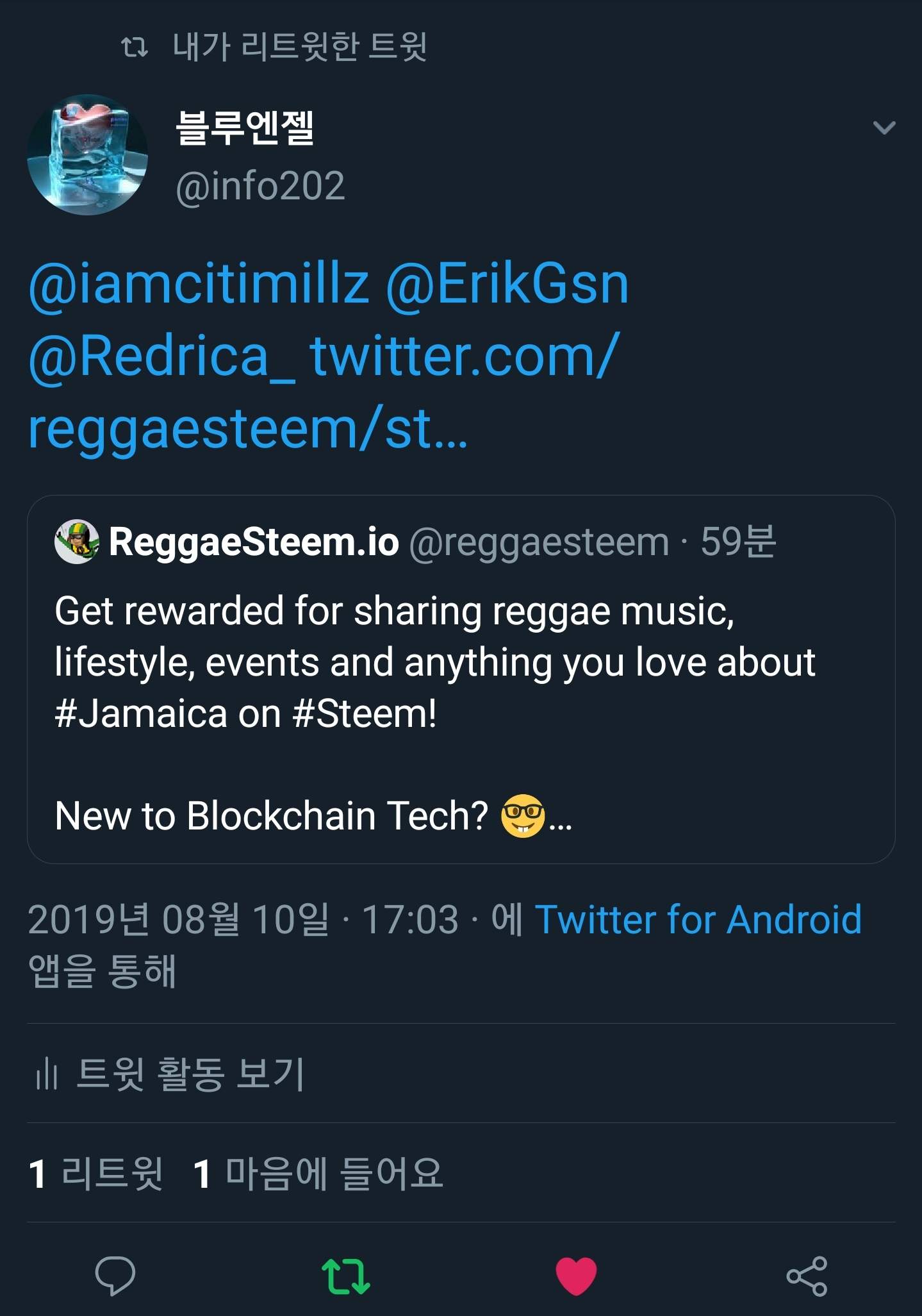 Tip: If you have already subscribed and followed our ReggaeSteem social accounts, all you need to do is re-steem this post + retweet this tweet and tag 3 friends, that’s it 😃.