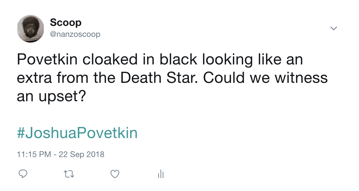 Povetkin cloaked in black looking like an extra from the Death Star. Could we witness an upset?