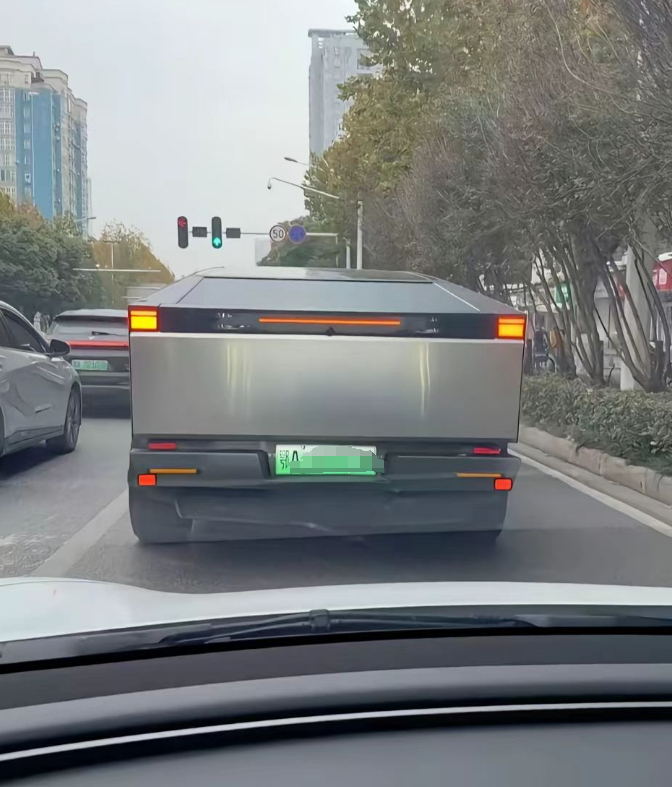 它彻底摒弃了传统汽车的圆润曲线,用几何切割的线条重构了皮卡的形态:一体化不锈钢车身泛着冷峻的金属光泽,贯穿式尾灯在车流中划出一道橙红光带,低矮的车身与突出的轮眉,既带着硬核越野的力量感,又透着未来科技的先锋气质。挂着 “鄂 A” 绿牌的它,不再是海外街头的 “网红道具”,而是实实在在地融入了中国城市的早高峰。