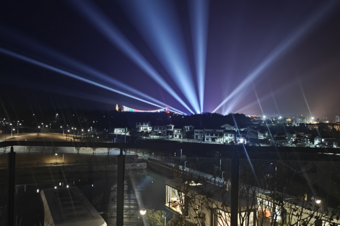 这束光,不仅是一场表演,更是一种情绪的释放。它让平凡的夜晚变得不再普通,让静谧的乡野瞬间拥有了都市的繁华与激情。站在窗前,看着这束光在夜空中肆意挥洒,仿佛所有的烦恼与疲惫都被这股力量一扫而空,只剩下纯粹的震撼与感动。