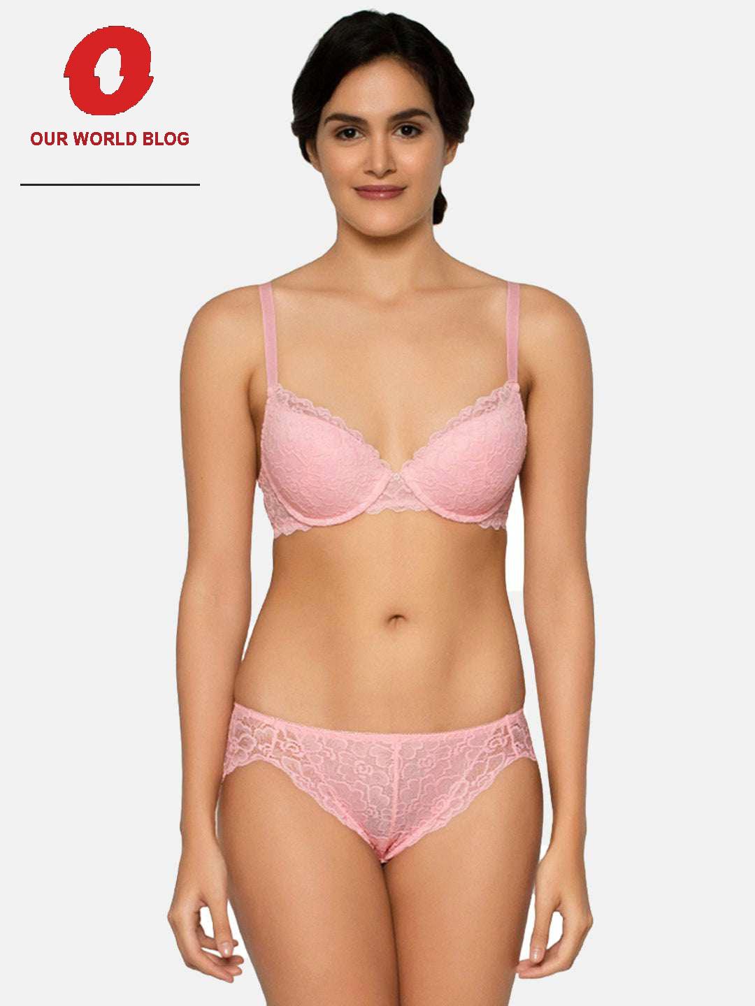 1. Lace Padded Bridal Bra Hipster Panty, in Pink