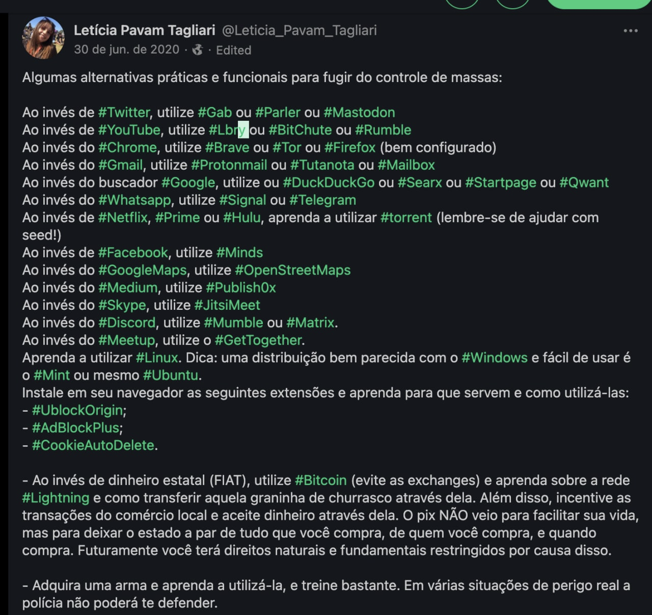 Ao invés de #Twitter, utilize #Gab ou #Parler ou #Mastodon