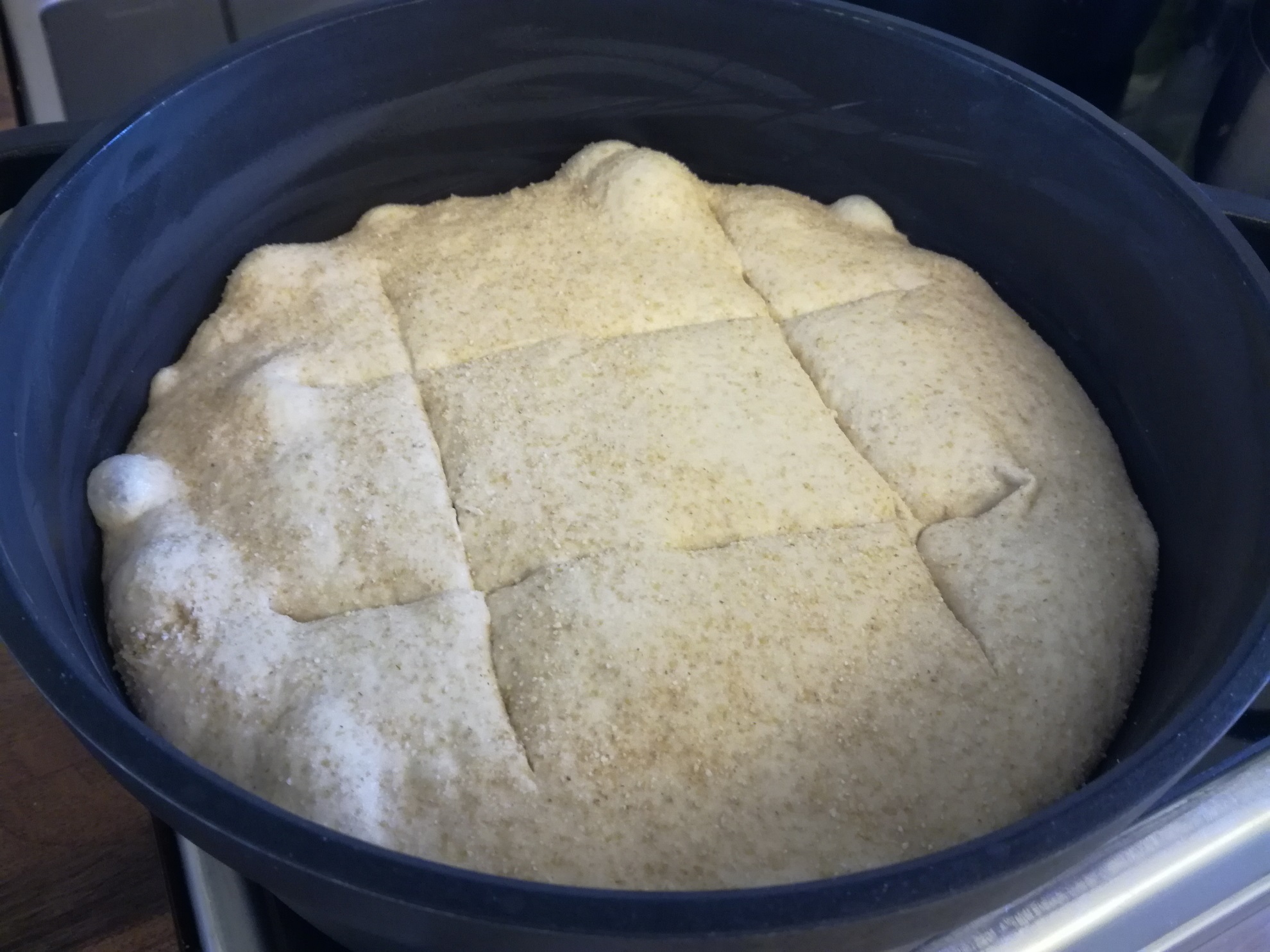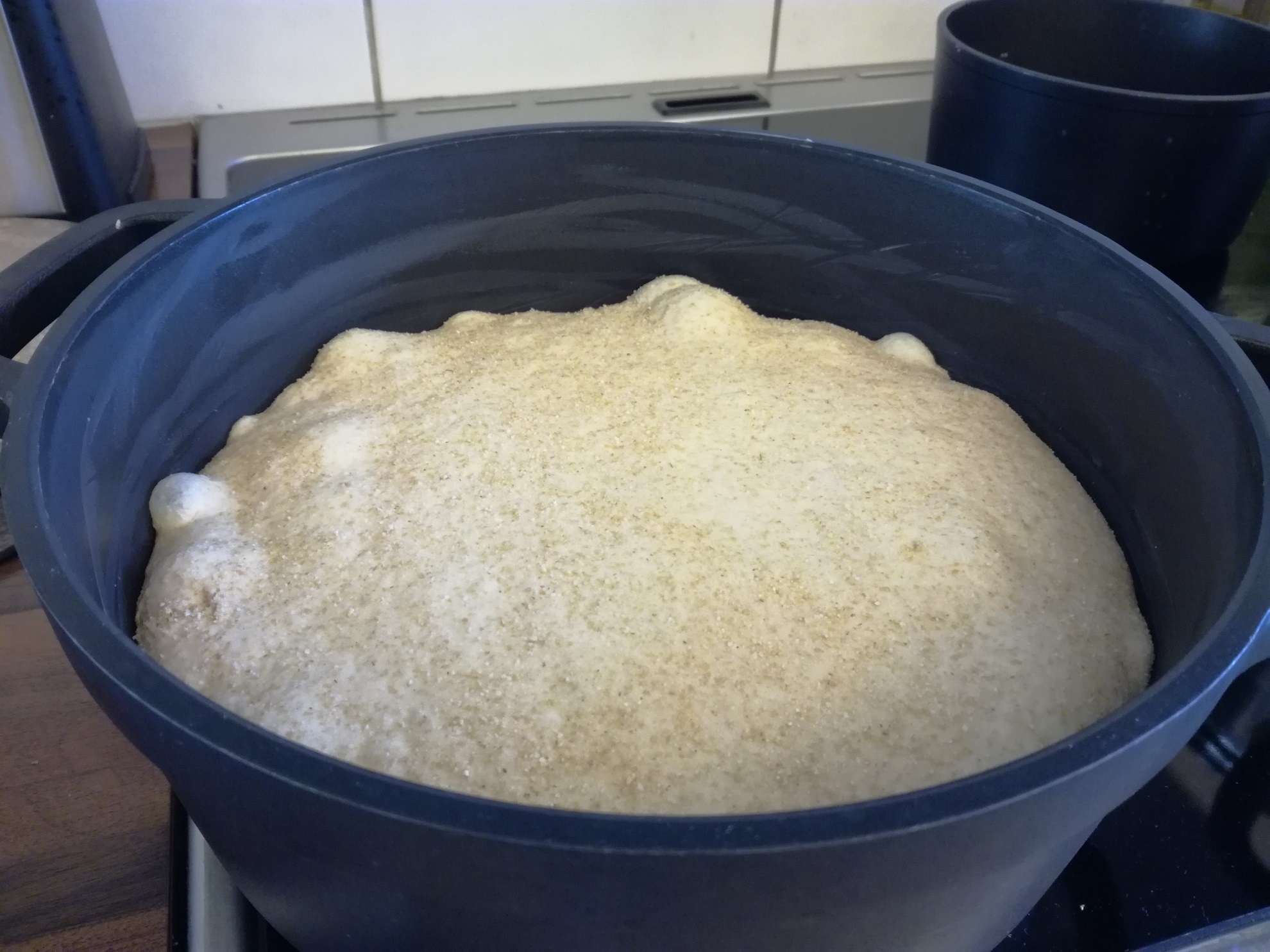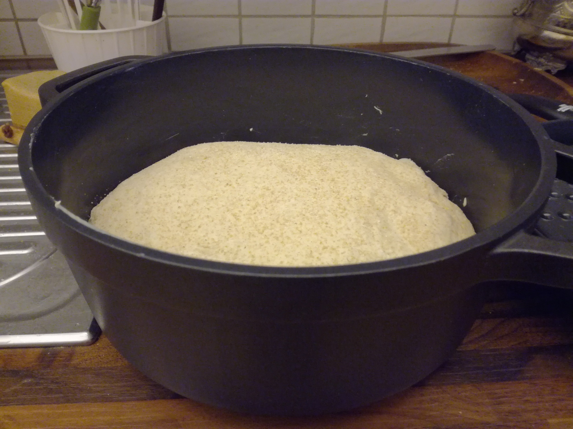 After a few hours wait, the dough has risen well enough to be baked some more.