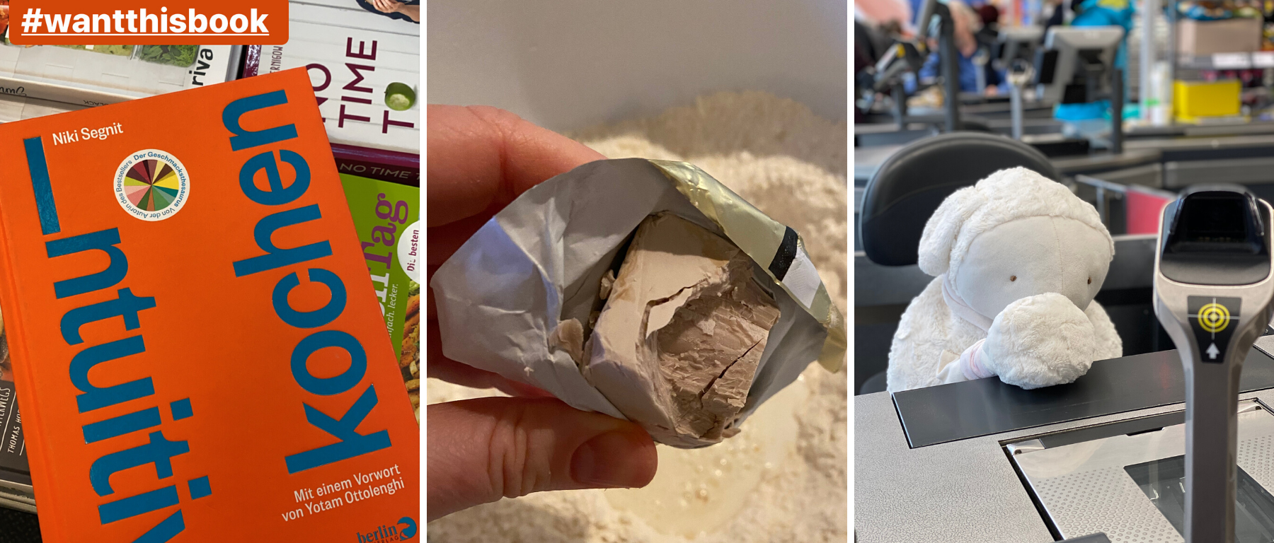 I was able to read through the first hundreds of pages before my lust to bake something enflamed. I was sitting with sweating hands bend over this book completely focussed on how to get some yeast. Yes, yeast. Foremost known as the least bought item at the supermarket. If I can remember it was never a problem to find at least 60 or more packages of fresh yeast at the cooling area of every supermarket. But this was before Corona. My baking lust started on Saturday evening and I was able to buy two packets of yeast on Tuesday. And believe me, we have no shortage of supermarkets here. I am not sure what people want to do with the yeast? Baking brioche with 40 degrees C fever?