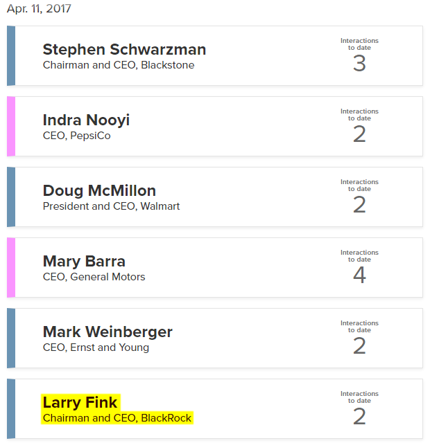 The CEO as well as Chairman of one of Genie Energy's largest shareholders, BlackRock, visited the White House just a few days after the airstrikes. Larry Fink & the very large firms behind him, such as Goldman Sachs, stand the most to gain monetarily from U.S. military moves. Subsequently, BlackRock's former [pre-1995] parent company Blackstone & its CEO Stephen Schwarzman also met on the same day.
