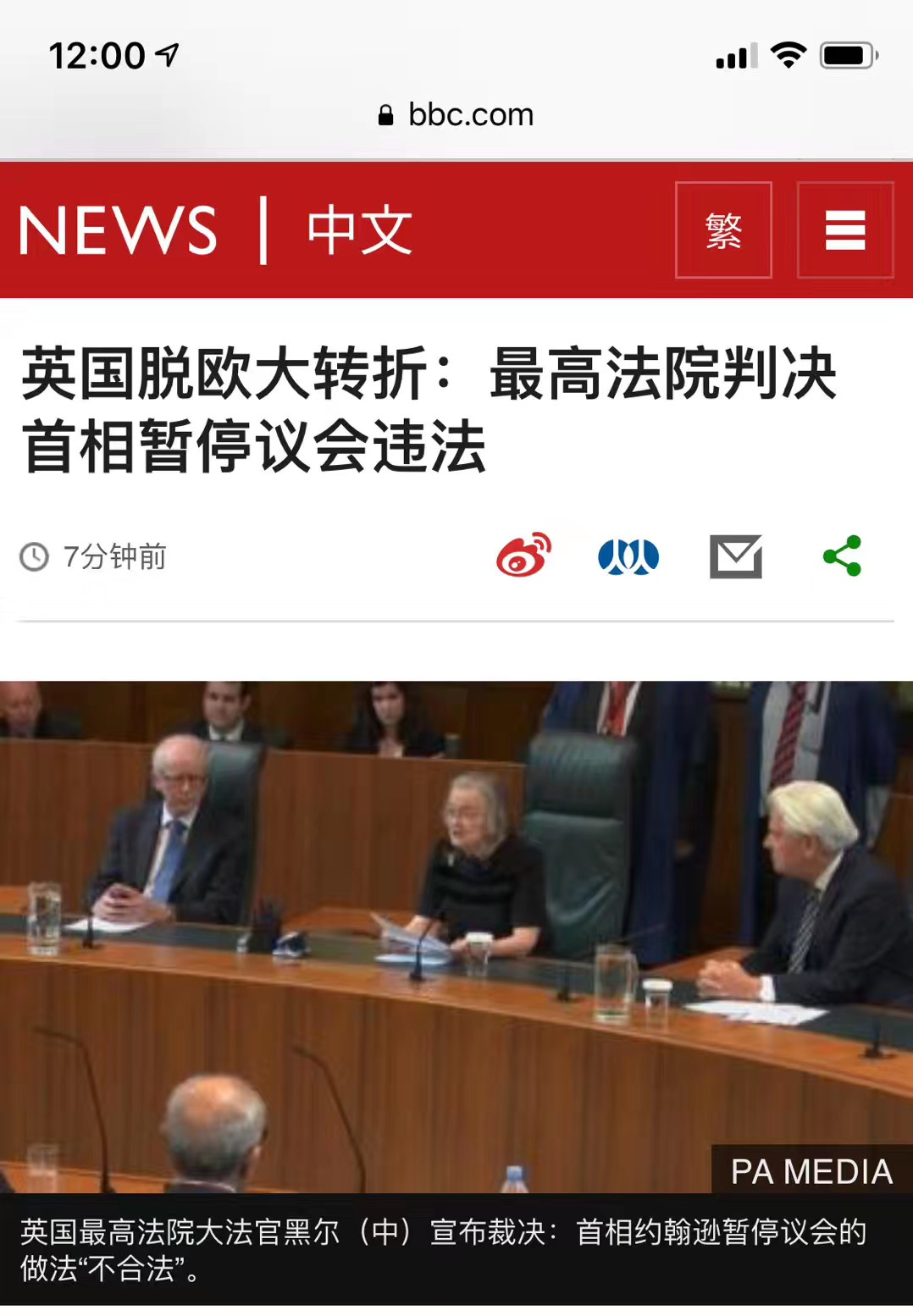 最高法院也被卷进来了,判决首相关闭议会非法。鲍里斯会是英国历史上最短命的首相吗?脱欧会被反转吗?继续关注脱欧连续剧……
